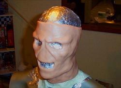 mummified the skull model with masking tape, it will soon be covered in foil and