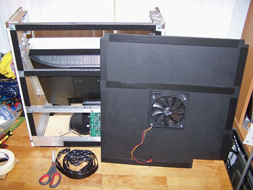 keep the monitor from shifting around inside the cabinet, I considered cheesing