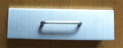 I also checked to make sure that the screw heads from the handle would not interfere with the screen bottom sitting flush with the bay cover. I bought the 2" aluminum handle for fifty cents from All Electronics Corp (they rock) and it matches the case very well. Since it fit without problems sitting perfectly centered on the bay cover I drilled two holes and screwed it down.