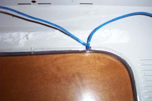 EL wire you looped through the hole beneath the molding. I used a plastic butter knife to push the EL wire into