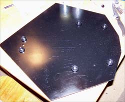 Since there will be wiring for the power button below the base I decided to use some case feet from a Lian-Li and two that I snagged from my daughters PC on the bottom of the base. I vinyl dyed all of the feet black and installed them.