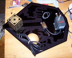 - Home - Mod Guides - Work Logs - Articles - Work Log Page: [1] - [2] - [3] - [4] - [5] - [6] - [7] - [8] - [9] 03/15/2005 Update... Arming the Animal. We recently replaced our hot water heater and didn't use all the foam for the pipes because they were short, the leftover piece (top of below pic) will be formed into the flesh of the arms. I also bought a long length of a smaller diameter thinner foam to fill in the musculature of the arms. Everything I used to make the arms is shown in the picture below. Below shows the upper arm assembly roughed out and ready for some foam detailing. The insulating foam tubing cuts easily with a serrated edge steak knife. I also plugged in all the cables for the speakers before I started filling it in. And below you can see why... it is all held together by good old black duct tape. Here they are almost finished, I added a little more foam to the left forearm since the below picture was taken and it no longer looks deformed (though for something like this deformity wouldn't really matter). The arms are very light weight (around 5 lbs. each), which is a good thing. The picture below shows the arms fleshed out (minus what I added to the left forearm) and installed. The arms go on and come off really easily, which was one of my big goals for this mod and necessary for the removal of the abdomen and chest sections. Now I have to wrap them in leather, that's not as easy as it sounds due to the spikes and speakers... but I have a plan. Here are the arms all wrapped up and installed, they came out better than I could have hoped and things are moving right along. 04/02/2005 Update... Creating a Base ACRyan sent one of their smoked Acrylpanels for me to use as a base for this mod, I have nothing but good things to say about this product... it is thick as hell and very easy to work with. I masked the entire sheet off both front and back and marked it with a sharpie for cutting. Now that it is cut to shape I will mark and drill the holes that will hold the mannequin to the base. While I was at it I also drilled holes for the puzzle box and wiring to go through. I had decided right after I got the Acrylpanel that even though it was plenty sharp looking as is that it would look better if I vinyl dyed a section from the puzzle box onto the bottom of it. So I re-masked the whole thing, drew my pattern onto it and attacked it with an X-Acto knife. Below is the masked section all cut out and awaiting a coat of black vinyl dye.