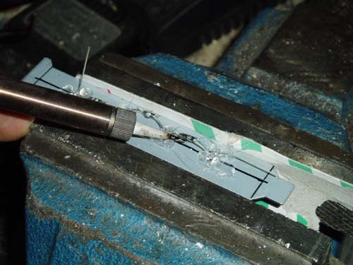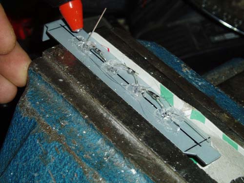 After the holes were made, I put in the LED's and glued them in place to make soldering