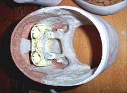 I made a Sculpey cast of the inside of the top of the skull, baked it and then