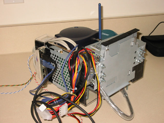 and zip ties to hold the DVD drive in place. You can also see the Netgear